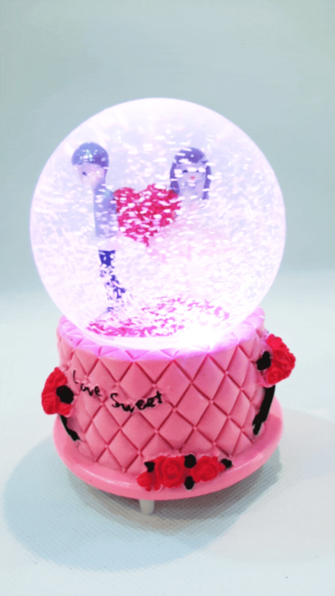 گوی موزیکال عشق شیرین دارای طرح های برجسته گل ، هفت موزیک متنوع پشت سرهم و پمپاژبرف میباشد.