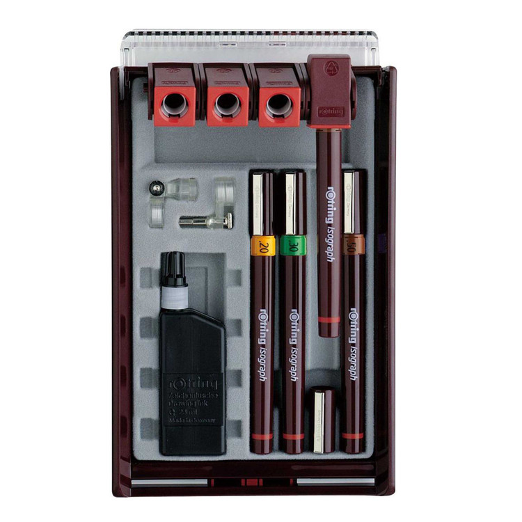 دارای یک جوهر مشکی برای شارژ کردن راپید ها و دو عدد گیره مخصوص پرگار مهندسیجعبه طلقی برای حمل و نگهداری راحت راپید هامناسب برای طراحان و معماران